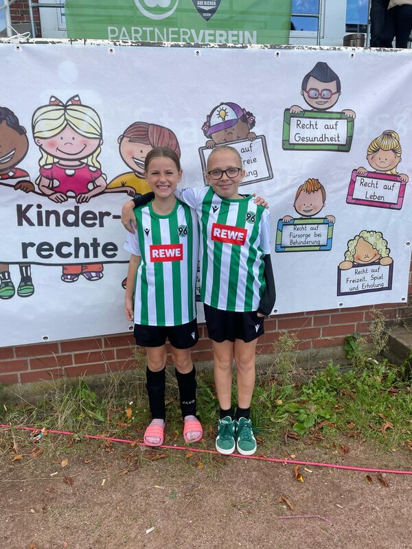 Die Freundinnen Helene (9 Jahre) – links - und Asma (11 Jahre) brennen für den Fußball und waren vom Fußballcamp total begeistert. Beide Mädchen trainieren in der Kreisauswahl des Niedersächsischen Fußballverbandes (NFV) und spielen für den ESV Fortuna Celle.